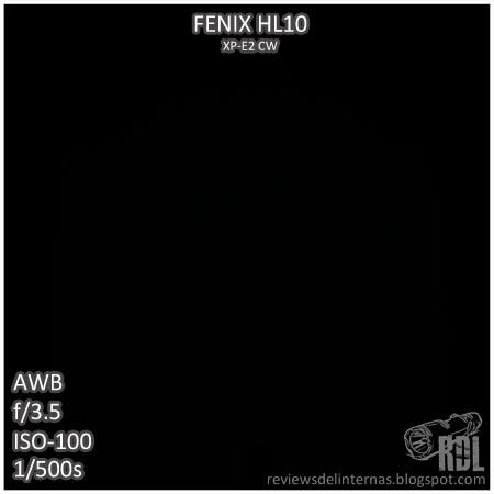 La lente TIR que se encuentra entre el LED y el cristal no concentra en absoluto, ofreciendo una proyección 100% inundadora, donde la ausencia de hotspot y la enorme área iluminada harán las delicias de aquellos que utilicen su HL10 en espacios reducidos, o simplemente para caminar con el cabeza orientado a sus pies (y quizás una linterna auxiliar en la mano para tener algo de alcance). Fenix declara un alcance máximo de 15 metros (hasta 0.25LX), aunque a la práctica y con el modo medio no iluminaremos más allá de un par de metros.