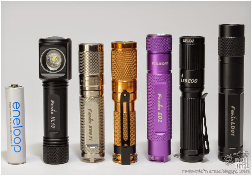 AAA Eneloop · Fenix HL10 · Fenix E99Ti · Maratac AAA Copper REV3 · Fenix E01 · Olight i3S · Fenix LD01