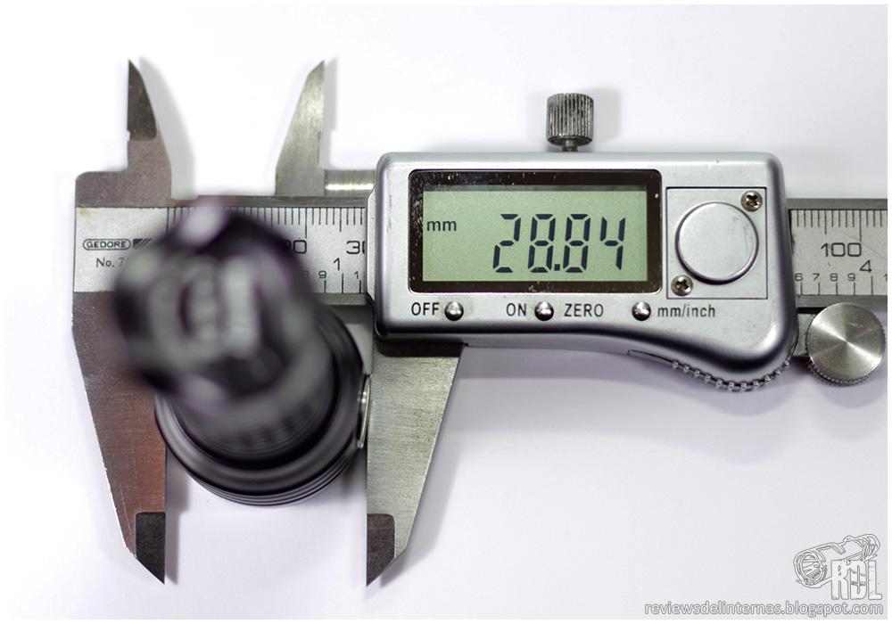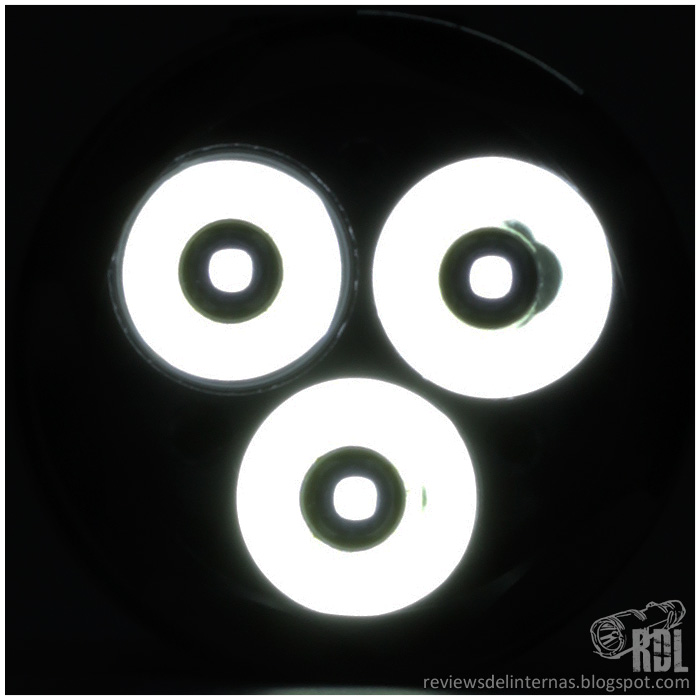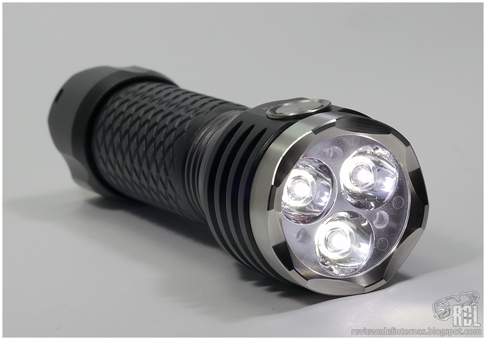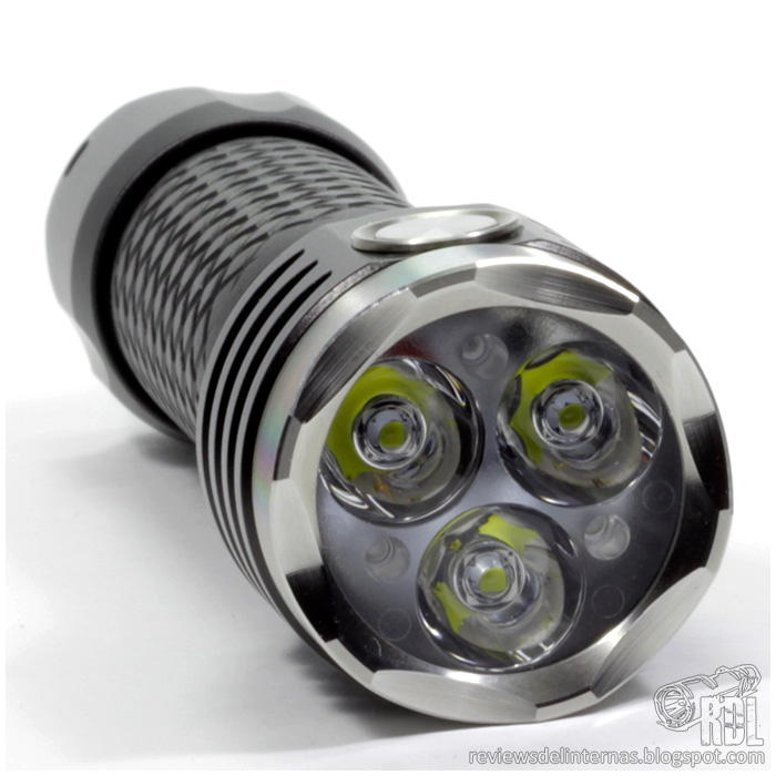 La cabeza de la linterna es ligeramente sobredimensionada sobre el tubo, para alojar perfectamente la lente triple.