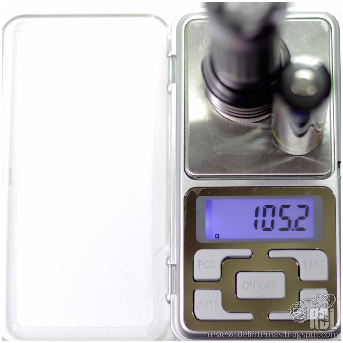 - Bloqueo: Podemos fácilmente bloquear la PT18 mediante un ligero desenroscado de cualquiera de sus roscas, evitando así cualquier tipo de encendido accidental y a la vez evitando el consumo parasitario que su interruptor digital inevitablemente provoca. Según mis propias mediciones el circuito de la PT18 consume aproximadamente 48uA, corriente que agotaría la batería incluida en algo más de seis años, o más de siete años para una NCR18650A de 3100mAh, ambos cálculos excluyendo la tasa de autodescarga de la propia batería. Podemos concluir que la corriente de standby de esta PT18 es completamente despreciable.
