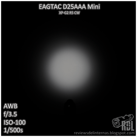 Para obtener las especificaciones para la versión Nichia 219B de esta Eagletac D25AAA he tenido que calcular mediante porcentaje tomando como referencia la única especificación aportada por el fabricante en su página técnica sobre el modelo, donde hablan de 68LM ANSI para el modo Alto de este modelo en su versión de luz neutra. Tomando como referencia los teóricos 85LM ANSI de la versión de luz fría con XP-G2, nos da una pérdida del 20% de luminosidad, algo que tras el test de los modos en la esfera es constante en los distintos niveles de salida.