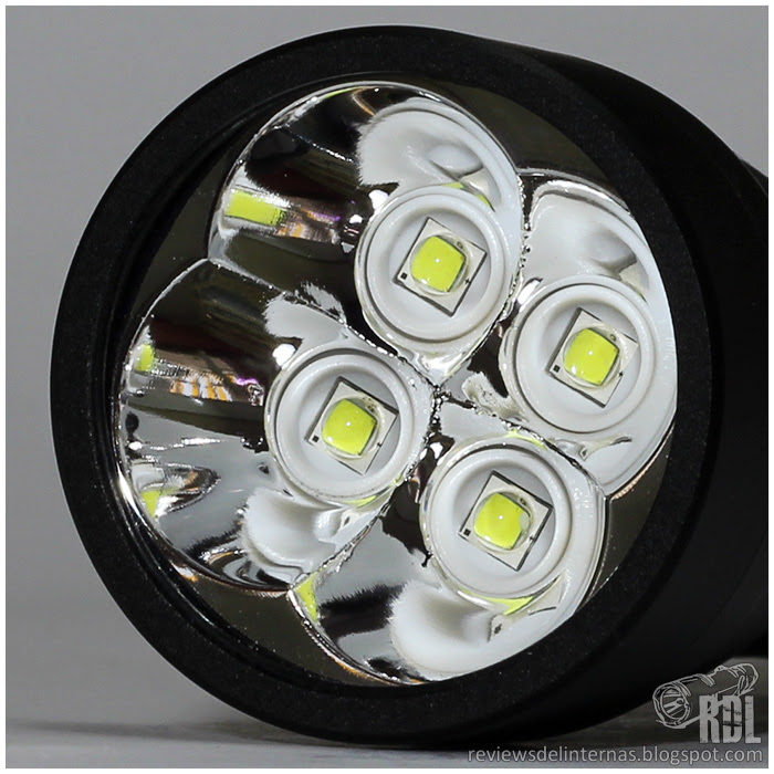 La cabeza de la linterna esta ligeramente sobredimensionada para alojar en su interior un sistema de cuatro emisores CREE XP-G2 con reflectores parabólicos parcialmente solapados muy interesante.