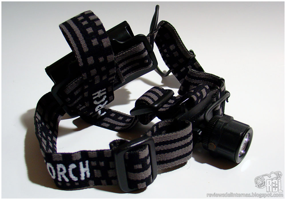 El foco está sujeto al soporte mediante un mecanismo de bisagra, que nos permite inclinarlo mediante clicks en 5 posiciones. Dicho soporte es también de plástico, y cuenta con un recubrimiento de espuma de alta densidad en su interior, lo que aporta comodidad y una excelente sujeción en la frente, todo ello en el mínimo peso (106.4g sin baterías/ 184.4g con baterías).