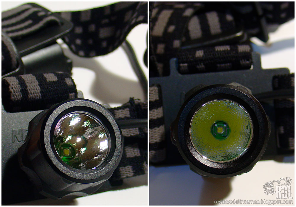 De nuevo, Nextorch apuesta por el uso de una lente de policarbonato en lugar del vidrio. Tras esta, un reflector rugoso enfocando perfectamente la pequeña superficie emisora del cree XP-E.