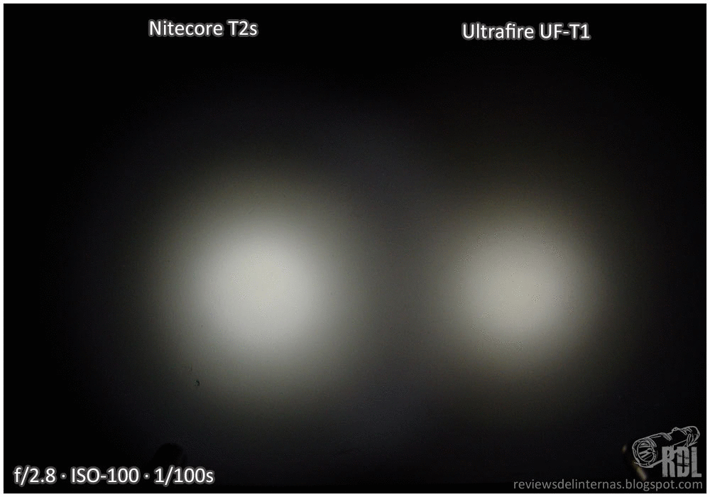 El empleo de un XP-E combinado con el pequeño reflector rugoso crea un spot algo grande, lejos de lo que inicualmente uno espera del pequeño Cree. Su tinte es muy bueno, sin matices verdosos o azulados.
