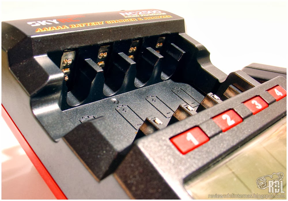 El aspecto externo del NC2500 no difiere demasiado en lo que a estética se refiere con los otros cargadores de referencia. Construido en plástico de calidad, el NC2500 tiene 4 bahias dobles completamente independientes, aptas para alojar baterías AA y AAA.