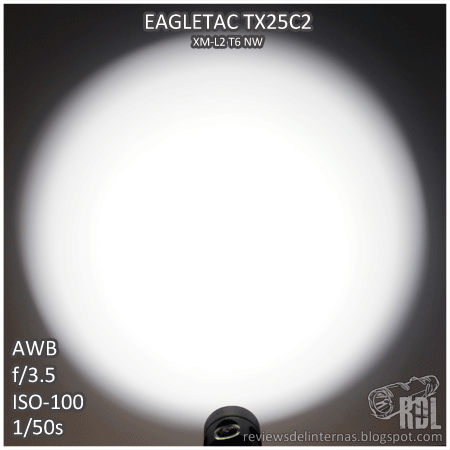 Una de las características estrella de las lentes TIR es su superioridad a la hora de obtener un tinte uniforme. La PT18 no es una excepción y en su beam solo podremos identificar un único tono de luz, blanco frío sin las clásicas distorsiones que las linternas con reflector parabólico y emisores CREE de última generación producen, especialmente en la zona que rodea el hotspot.