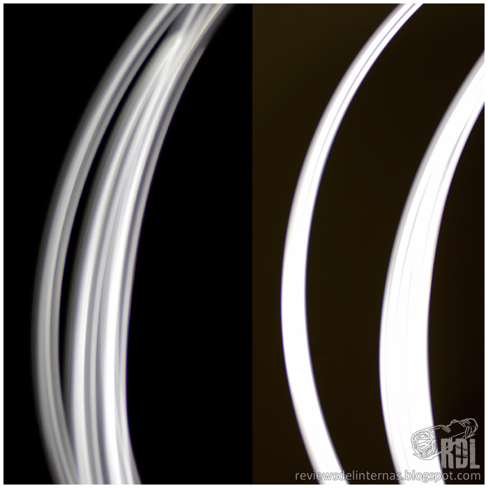La proyección de esta triple XP-G2 es claramente inundadora, con una amplia y generosa zona iluminada por el spill de casi 180º, pero manteniendo un spot bien definido, por lo que resulta bastante práctica tanto en interiores en sus modos bajos como en exteriores en los modos más altos.
