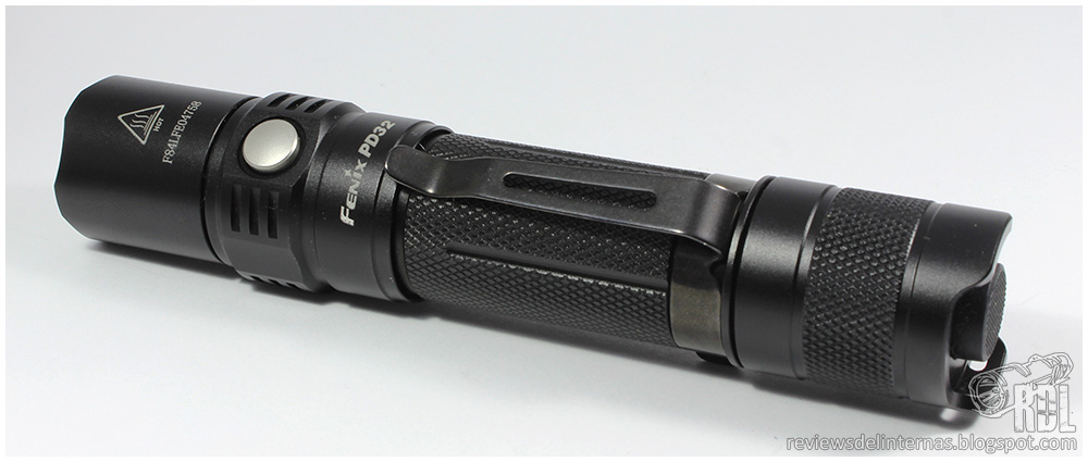 El tubo central de la linterna está acabado en knurling no demasiado agresivo, pero que es capaz de generar un mejor agarre de la linterna gracias a su tacto rugoso. Junto a la unión con el tailcap, encontramos un clip sujeto mediante presión, similar o idéntico al que encontramos en la antigua PD32 o en otros modelos similares de Fenix.
