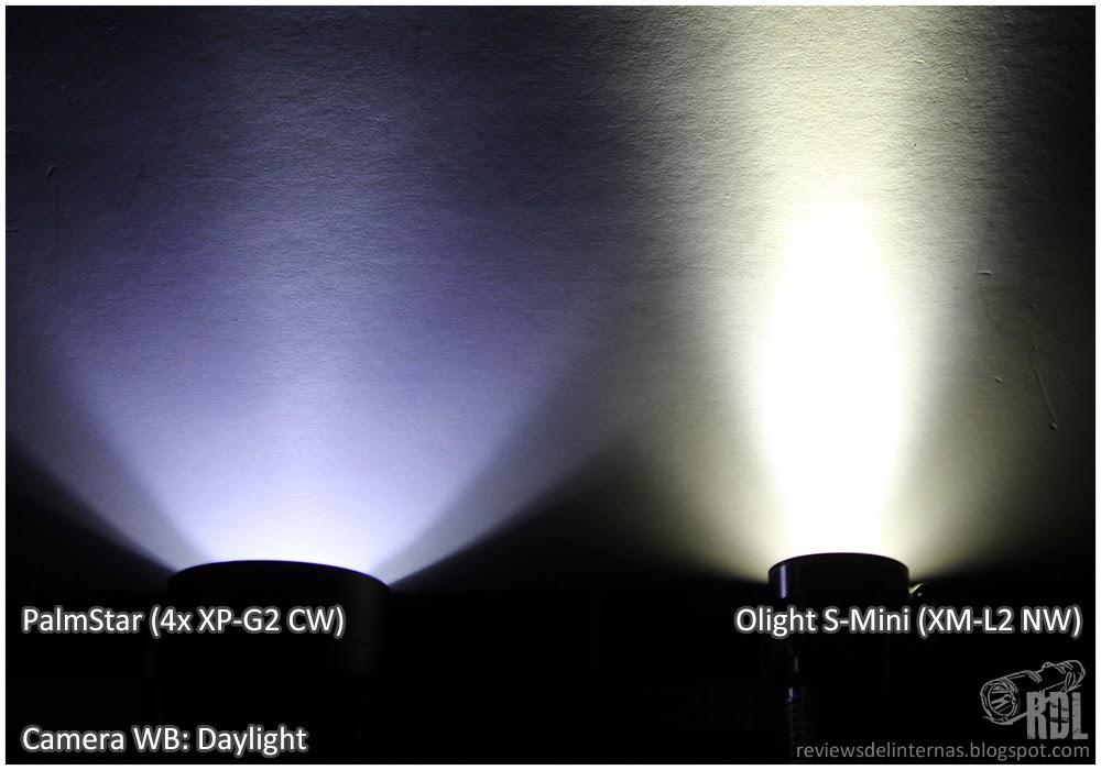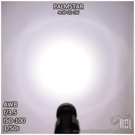 Aspectos negativos: Como acabo de mencionar, la baja eficiencia me ha dejado sorprendido ya que sobre el papel la configuración de esta PalmStar, con cuatro emisores y una salida máxima moderada, debería haber obtenido la mejor eficiencia calculada, no solo de las multi-emisor, sino por supuesto que las de un emisor sencillo, y como hemos visto esta linterna se queda bastante lejos. El interfaz de usuario, prácticamente idéntico al utilizado en la Niwalker MM25MB tiene el inconveniente de precisar la selección del modo en el primer segundo tras el encendido, requiriendo de un apagado-encendido para cambiar de modo si estamos ya utilizando la linterna. El reparto de modos, a mi parecer tiene un nivel que sobra (L4, "830lm") y necesita otro más bajo, algo en torno entre los 3~5 lm. El tinte es a mi parecer excesivamente frío. Aunque no soy de los que utilizan baterías protegidas, el espacio para alojar la 18650 es tan sumamente justo que incluso alguna no protegida con button top añadido entra algo forzada.