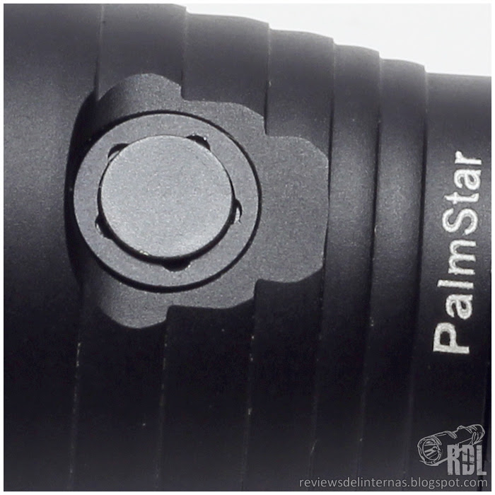 La forma de la cabeza es sencilla, lisa, libre de aletas disipadoras ni afiladas formas. En el lateral encontramos el interruptor digital mediante el cual controlaremos todas las funciones de la linterna. Está cubierto por un botón del mismo material que la linterna, y lo han situado en un pequeño plano mecanizado para tal fin. A la práctica resulta algo dificil de localizar al tacto ya que apenas sobresale del plato, quedando dentro del perfil de la linterna.