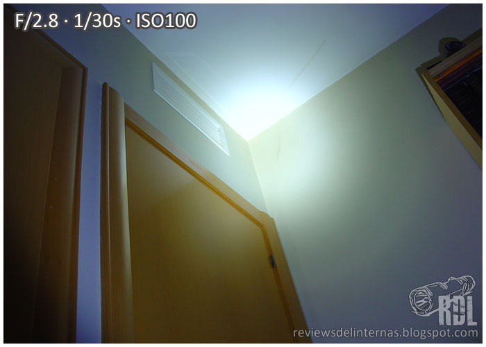 El carácter inundador del XM-L es domado de manera muy buena por el reflector liso, convirtiendo la proyección en una bonita mezcla entre linterna lanzadora e inundadora.