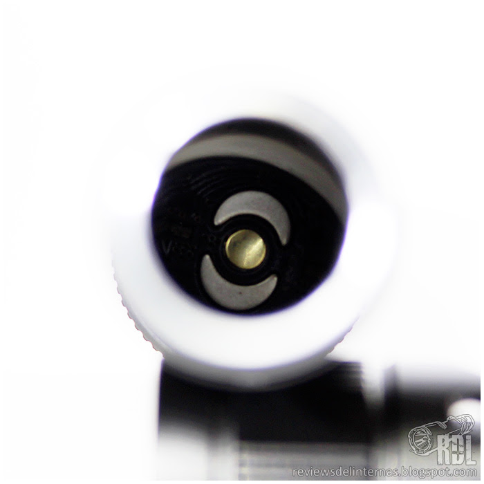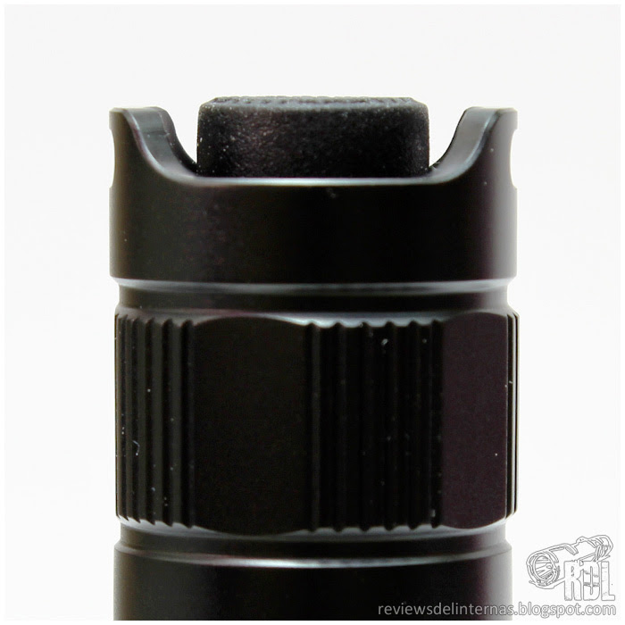 El diseño del tailcap permite colocar al linterna en tailstand, aunque no de manera muy estable ya que el recubrimiento de silicona del pulsador sobresale ligeramente. Las roscas son cuadradas, completamente anodizadas y llegan correctamente lubricadas.