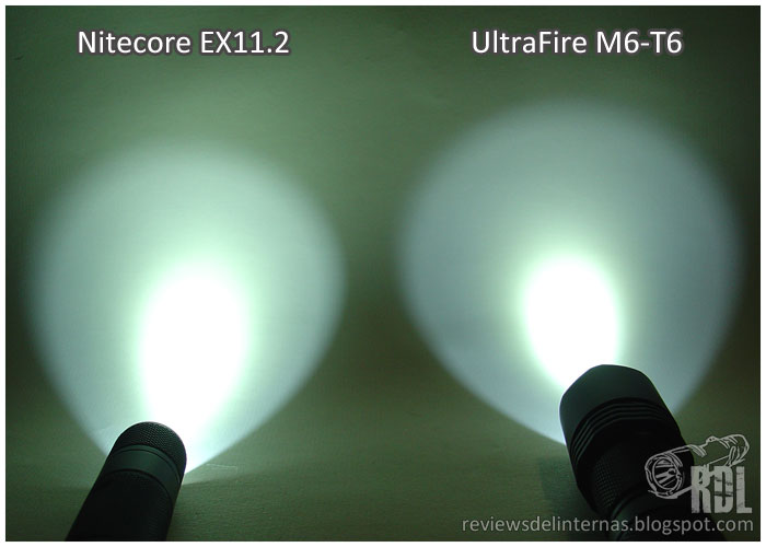 Comparada con la UltraFire C3 (con XP-G R5) y la nueva UltraFire M6-T6, ambas con baterías Li-Ion, la EX11.2 usando una simple cr123a supera claramente a ambas.