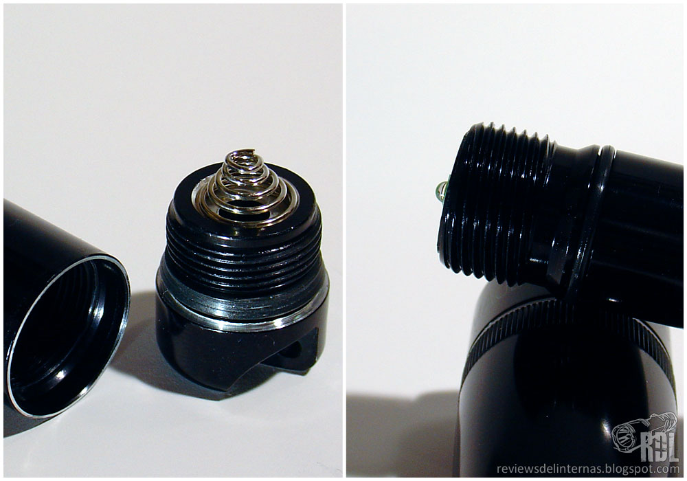 En el tubo, tenemos el Cree XP-G R5 (de primera generación) montado en una especie de casquillo pivotante, que es el que actúa como interruptor.