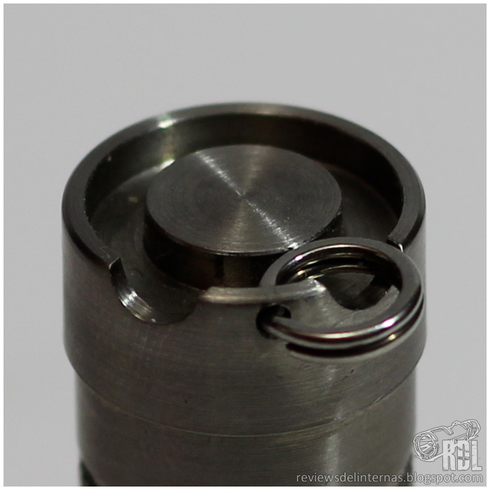 Instalado en el tailcap encontramos una pequeña anilla que nos permitirá fijar la linterna a nuestro llavero si así lo queremos, o colocarle cualquier tipo de accesorio colgante como un gancho rápido o una correa. Dicha anilla no impide colocar la linterna en tailstand ya que, a ambos lados del orificio donde se encuentra hay sendos rebajes para que dicha anilla no interfiera lo más mínimo sobre el perfil.