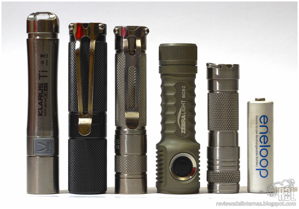 Klarus MiX7 Ti · Nitecore D10 · Eagletac D25A Clicky Ti · Zebralight SC52 · DQG TinyAA