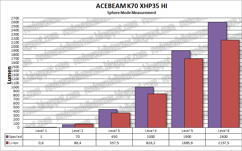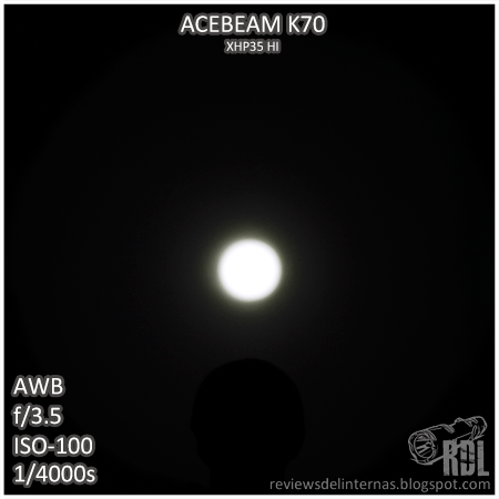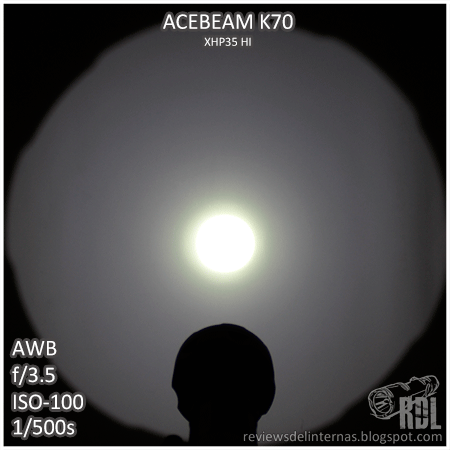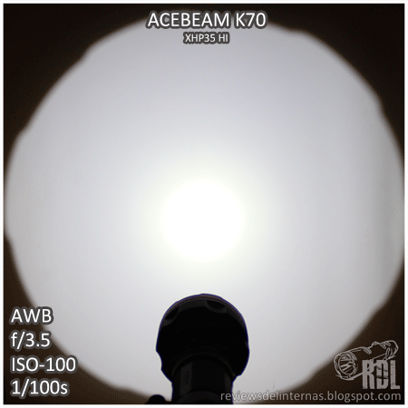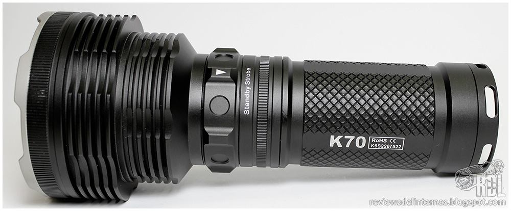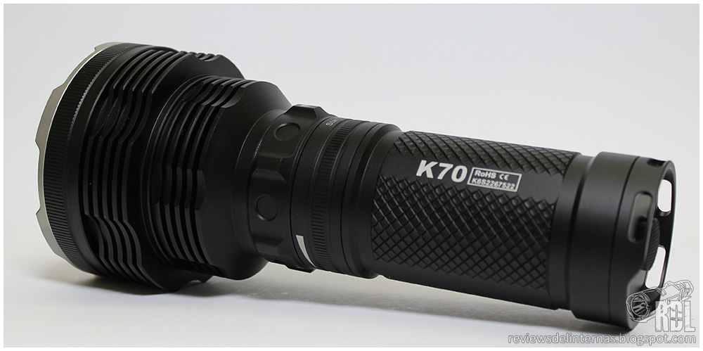 Aspectos negativos: Debido al rango de alimentación del XHP35 HI y los 12V necesarios para hacerlo funcionar, la eficiencia y el rendimiento en general de la K70 está comprometido y es muy dependiente del tipo y calidad de las baterías que usemos. Me hubiese gustado que Acebeam hubiese grabado en el cuerpo de la linterna una indicación precisa en cada uno de los retenes pertenecientes a sus diferentes niveles, de forma que podríamos de forma rápida y sencilla (sin necesidad de ir contando "clicks") seleccionar el modo deseado con la linterna apagada. Tamaño voluminoso y peso alto es el peaje que hemos de pagar para obtener ese espectacular alcance.