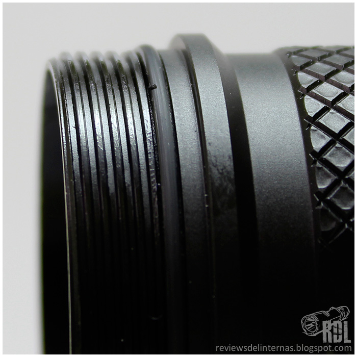 El mecanizado del tubo es bastante básico, pero acertado. Esta recubierto casi por completo por un knurling romboidal no demasiado agresivo pero agradable al tacto y mejora considerablemente el agarre de la linterna.