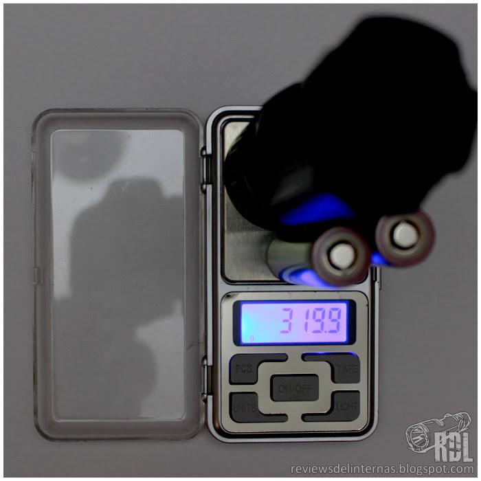 El cuerpo de la linterna muestra una textura de aletas disipadoras en su parte central, mientras que en los extremos está acabado con una textura de cuadrados.