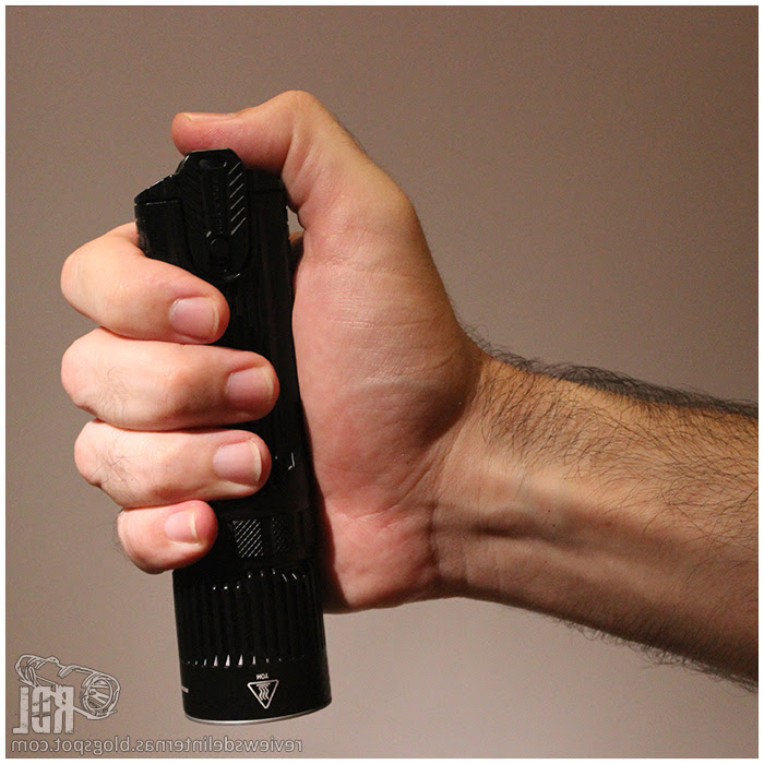 • Modo Estroboscopico: Desde la retén de máxima potencia, existe una última posición más a la derecha, donde se encuentra el modo estroboscópico. De nuevo, la combinación de pulsador forward y anillo nos brinda la posibilidad de tener la linterna preparada para encender en estroboscópico (uso defensivo u ofensivo) directamente desde el interruptor del tailcap.