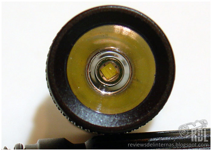 Tras la lente de cristal y una tórica, tenemos un pequeño reflector liso no muy profundo con la obertura exacta para que asome la cúpula o dome del XP-E. Totalmente centrado.
