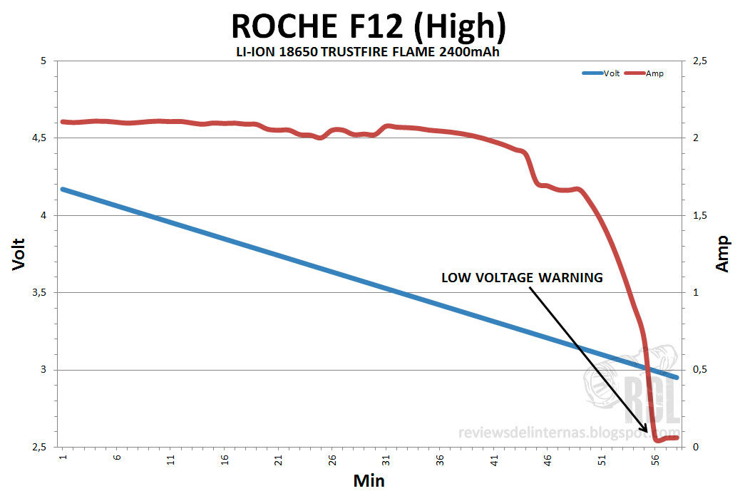 (~2.95V según mis mediciones)*, cambia automáticamente al modo bajo, emitiendo