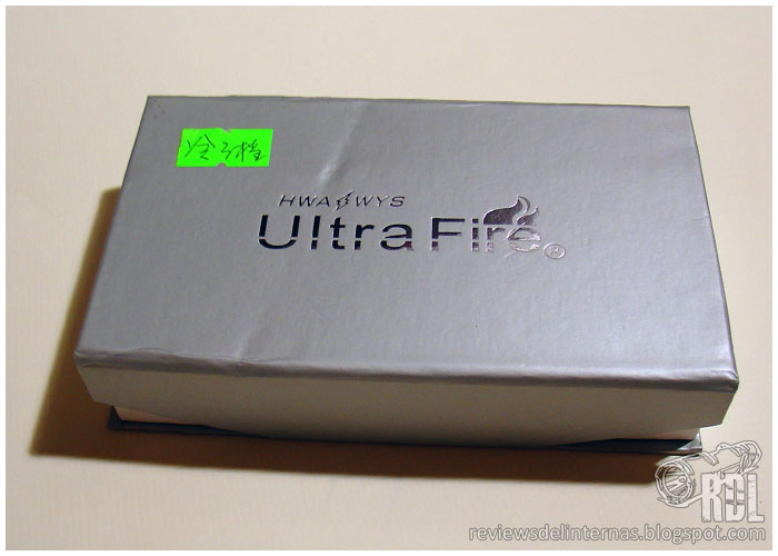 logotipo de Ultrafire, y en su interior encontramos además de la susodicha linterna,