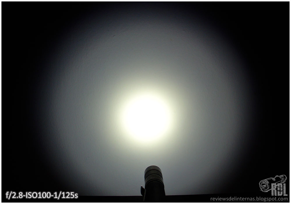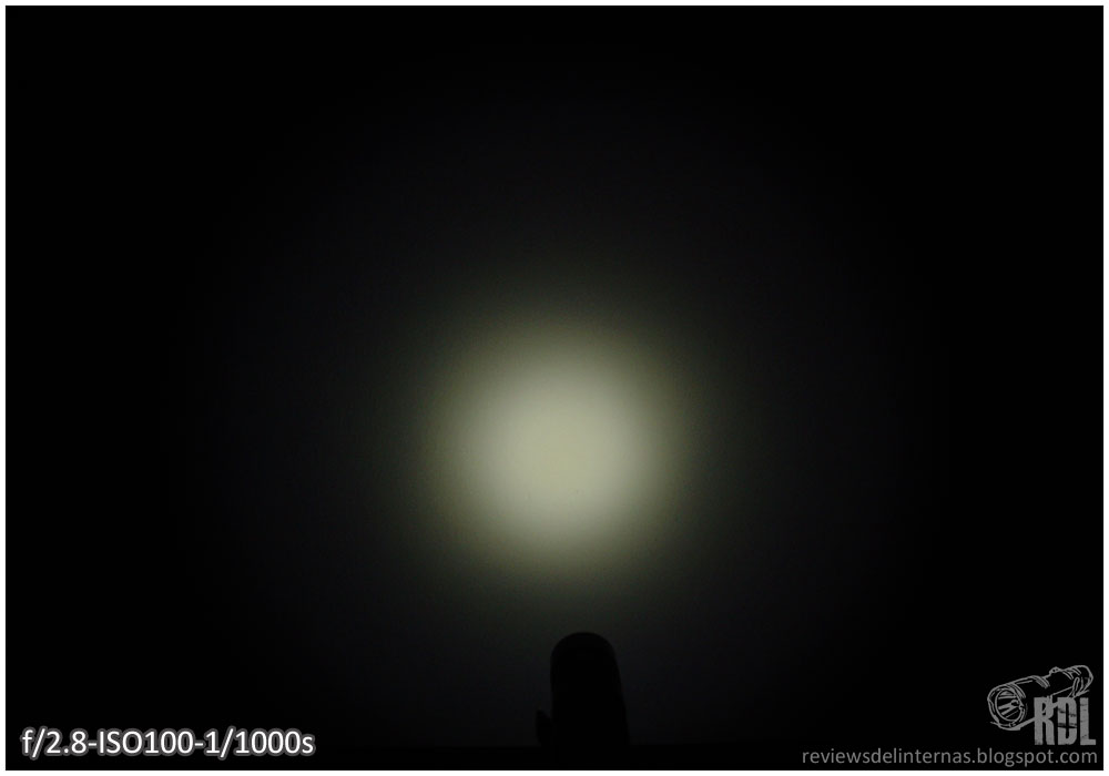 Como es de esperar, la proyección de la D25A XM-L es completamente inundadora. El ligeramente rugoso reflector en combinación con la amplia superficie emisora del XM-L crea un hotspot grande, que se degrada suavemente para fundirse con el spill.