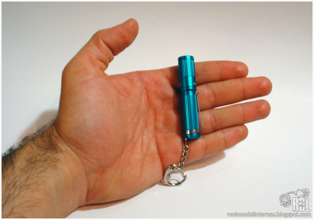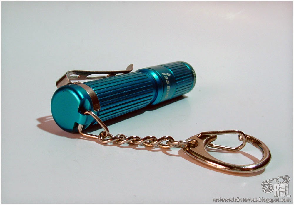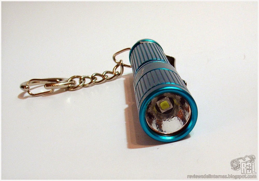 En el tailcap tenemos también un enganche para llavero, mecanizado en un lateral que no impide colocar la linterna tailstanding. Tiene instalada una pequeña cadena y un mosquetón aparentemente no desmontables.