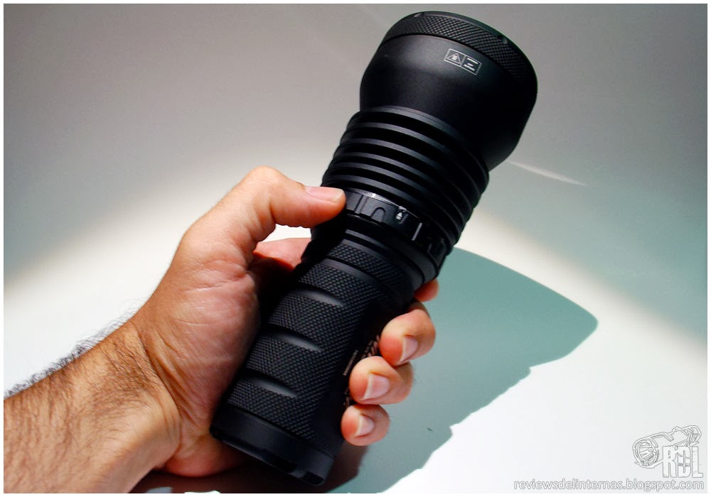 Al sacar la linterna de su caja lo primero que me ha llamado la atención es su robusto y contundente aspecto. No hace falta encender la linterna para darse cuenta de que las largas distancias son su campo de trabajo.