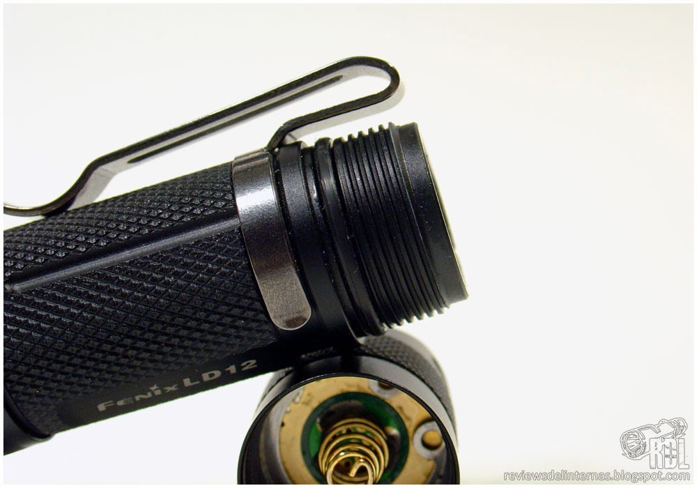 Las roscas de unión entre las partes siguen los estándares Fenix. Cuadradas, anodizadas y perfectamente mecanizadas corren suaves incluso sin estar lubricadas. La rosca de la cabeza es de un paso distinto a la del tailcap, por lo que no podremos montar el tubo central invertido para cambiar la orientación del clip como vimos en la PD32 G2.