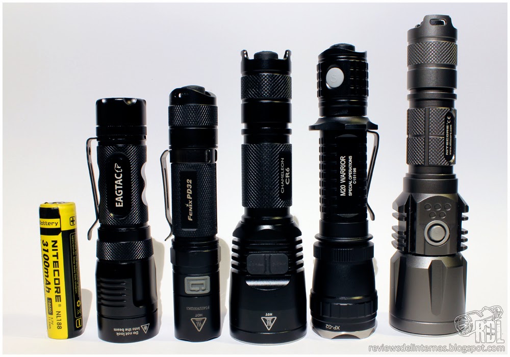 18650 · Eagletac TX25C2 · Fenix PD32 G2 · Nitecore CR6 · Olight M20 Warrior · Nitecore P25