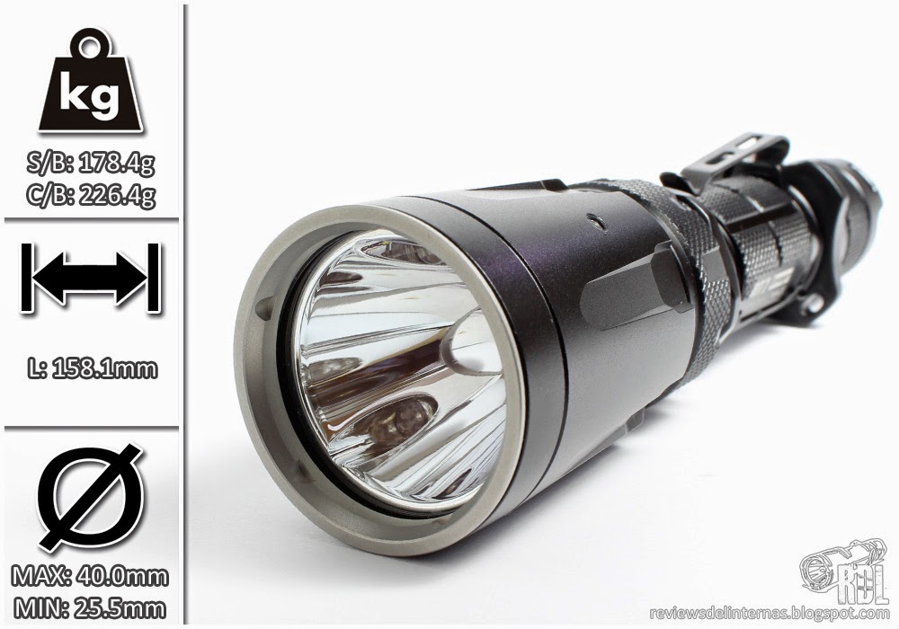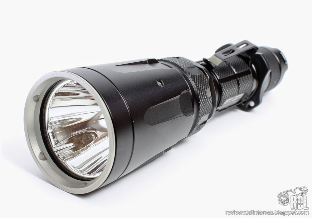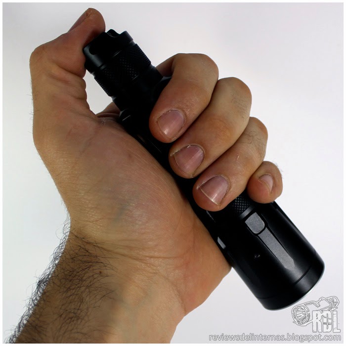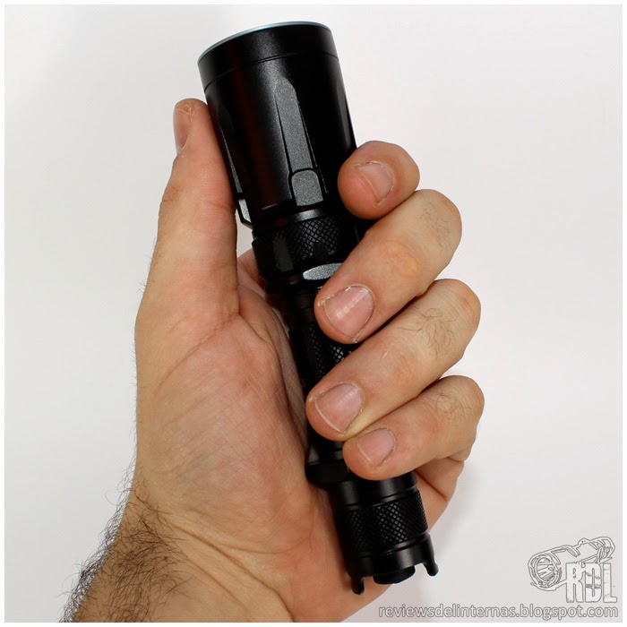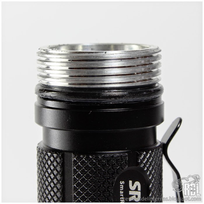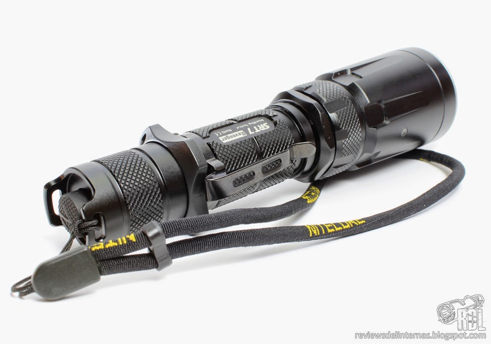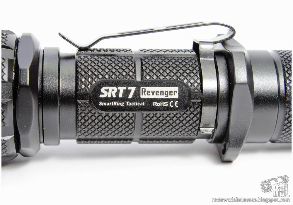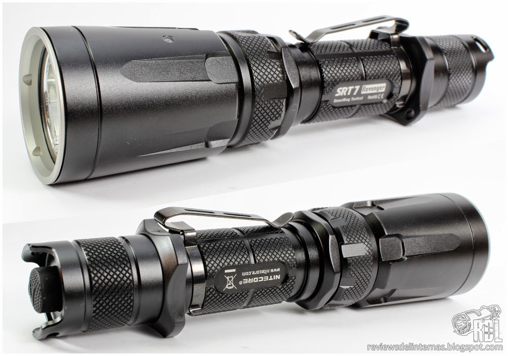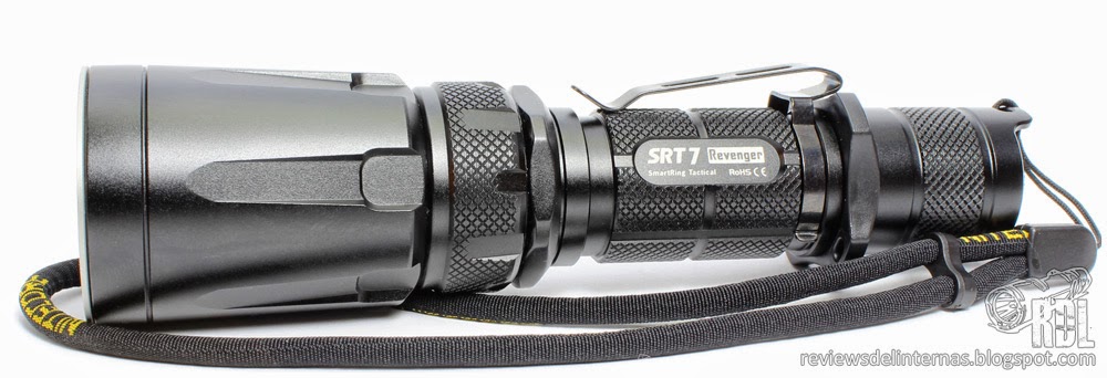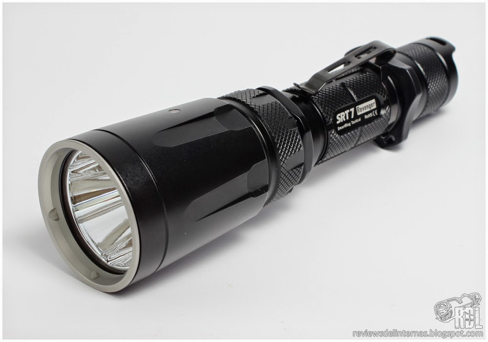 Las líneas generales y mecanizado exterior de esta SRT7 recuerda mucho a la P25, y en general a la gran oferta existente por parte de muchos fabricantes de linternas de aspecto táctico para una 18650 y con un diámetro de cabeza de alrededor de 40mm.