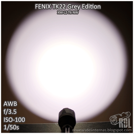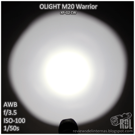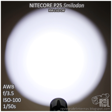 El tinte es el típico XM-L2 CW, con un ligero halo amarillo verdoso en la transición entre el hotspot y el spill.