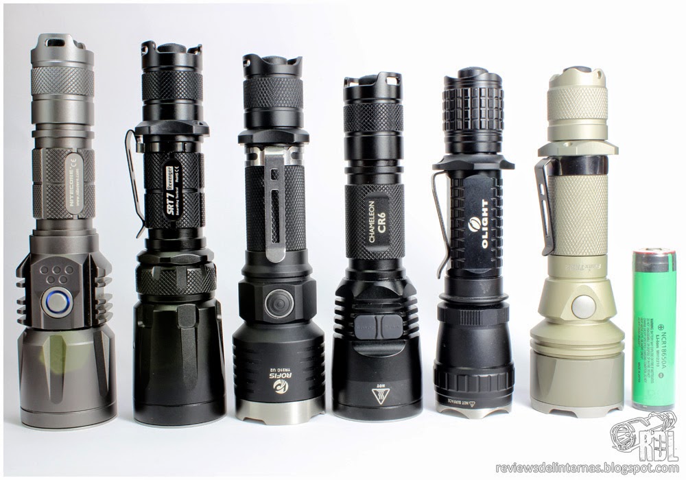 Nitecore P25 · Nitecore SRT7 · Rofis TR31C · Nitecore CR6 · Olight M20 · Fenix TK22 GE
