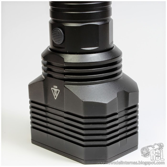 En el cuello encontramos el interruptor “two stage”, un sistema patentado por Nitecore de interruptor digital con funciones avanzadas y con un sistema de retroiluminación embebido que además de funcionar como localizador, emitiendo un flash cada pocos segundos cuando la linterna está apagada, hace las funciones de avisador de bajo voltaje con la linterna encendida y lector del voltaje de las baterías al insertarlas o bloquear la linterna. Está recubierto por una silicona oscura pero traslucida, que nos deja ver a través de ella los parpadeos que el interruptor realiza.