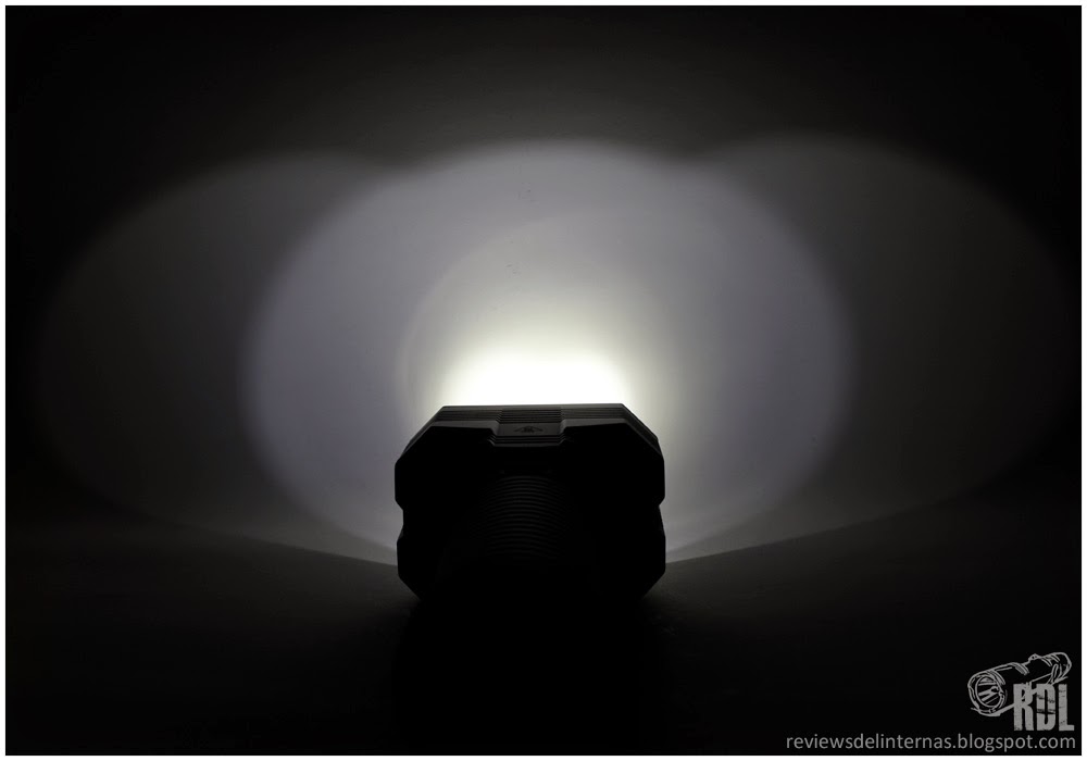 El tinte es el típico ya visto en otras linternas de la marca que utilizan este XM-L2 T6 CW, con un blanco frio con una leve tendencia al verdoso en el degradado del hotspot.
