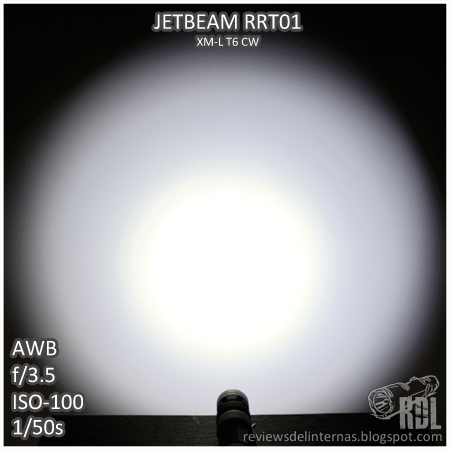 La proyección de la luz auxiliar, como es de esperar en este tipo de combinación de LED multicolor integrado en un lateral del reflector es muy similar a la que vimos en la SRT7, con las típica combinación de artefactos y zonas oscuras, amplificadas por el reflejo del reflector para el XM-L2.
