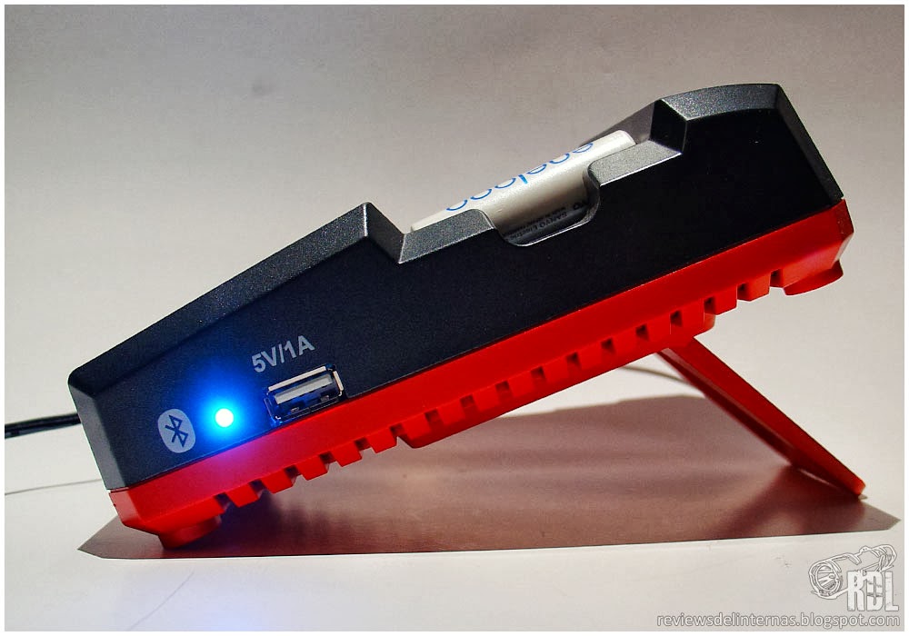 En el costado derecho, tenemos un puerto USB mediante el cual podremos alimentar dispositivos que se carguen mediante USB. Junto a este, tenemos un LED azul para identificar la función Bluetooth.
