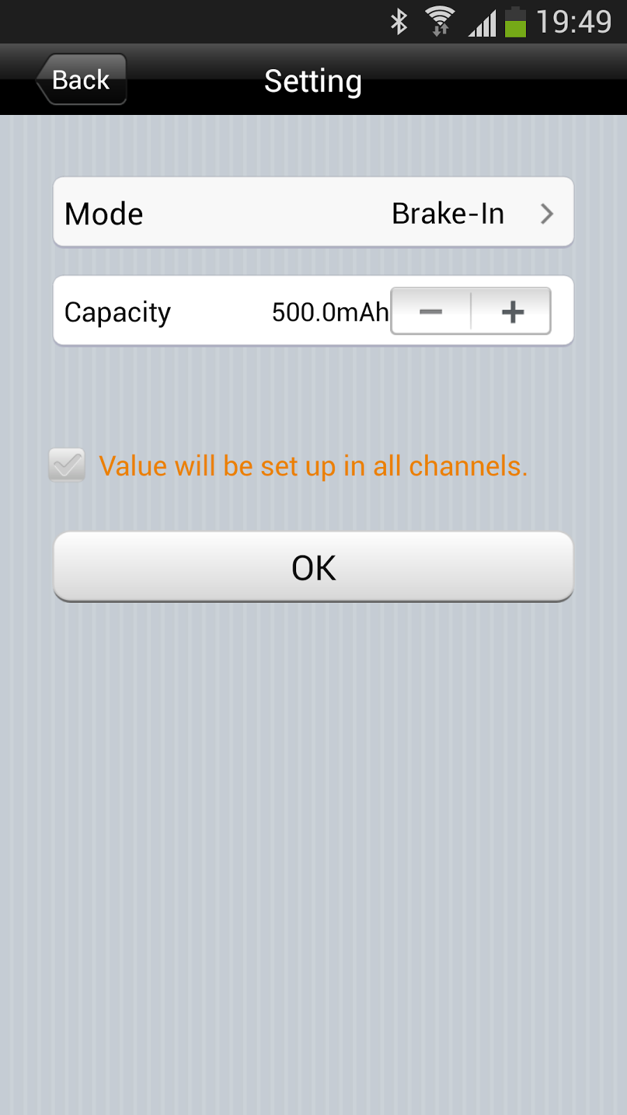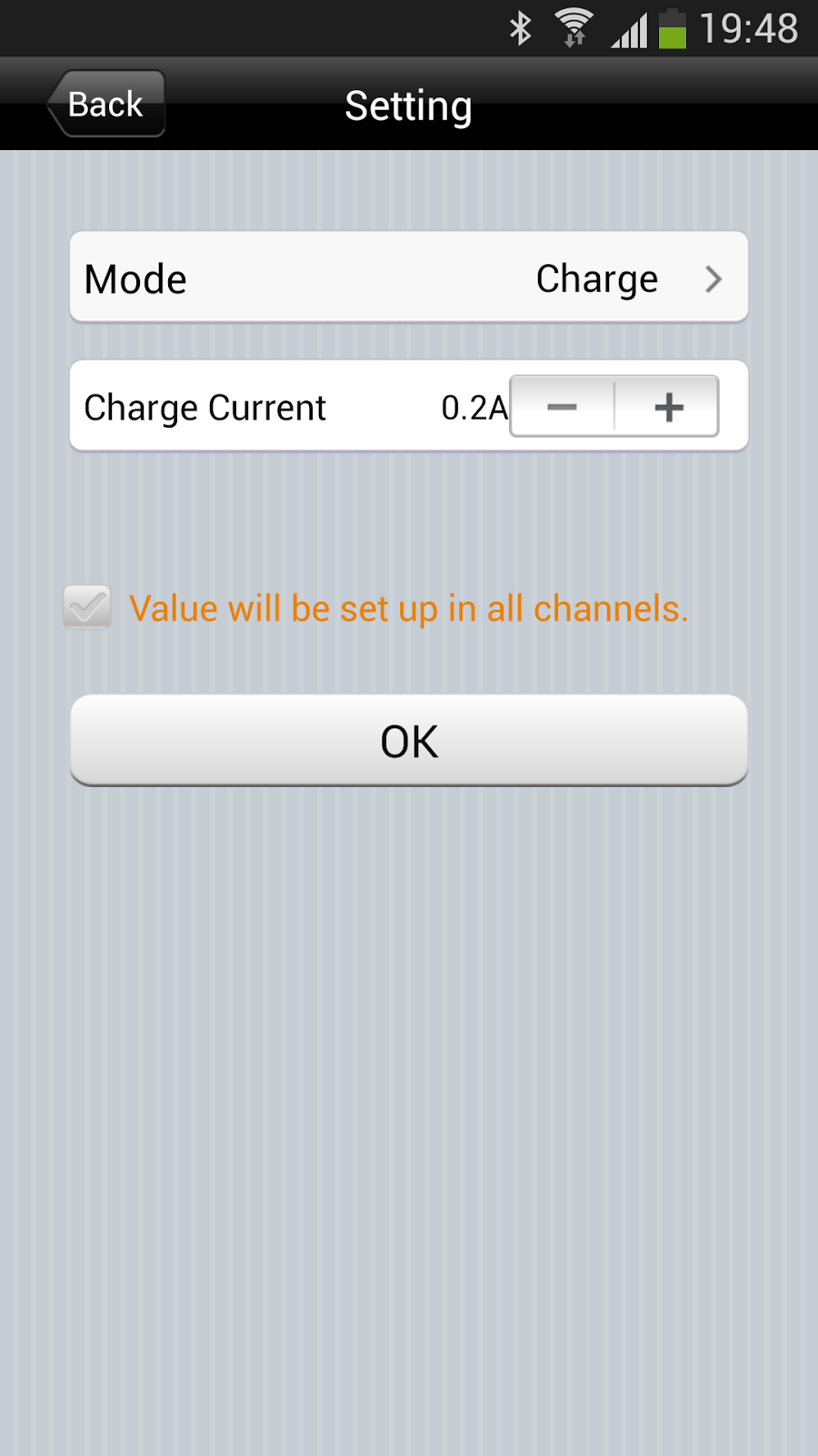 Para seleccionar la función, pulsamos MODE para seleccionar la función, y acto seguido podremos ajustar los valores acorde a nuestra necesidad. Una vez todo ajustado, solo queda pulsar el botón OK para que el cargador empiece a efectuar la operación seleccionada.