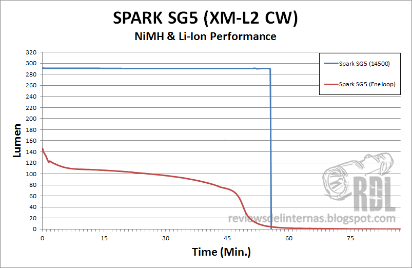 Trevilux escribió:He encontrado alguna gráfica por la web en que para el modo Max (que con la "UPz esfera" nos da 100 lúmenes) usando eneloop 2000mA el runtime ya está en 2 horas y media. Entonces estoy más animado a la espera de la sf5, con unas 2500mA tendremos 3 horas de luz bastante decente. :D