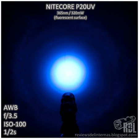 Ese es el detalle que más me ha impresionado de esta linterna, que sobre superficies no fluorescentes apenas hay luz, por lo que las marcas o cualquier detalle que reaccione al UV resalta mucho, cosa que no ocurre con la de 395-410nm.