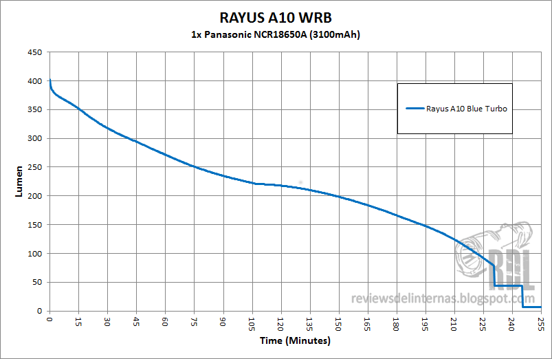 La Rayus A10 ofrece una característica interesante, y es que al funcionar en el modo Turbo, en lugar de gestionar su rendimiento mediante un stepdown por tiempo, cuenta con un sensor de temperatura que baja un modo si esta sobrepasa un punto “critico”. Así pues, si las condiciones ambientales lo permiten, es capaz de funcionar en modo Turbo de forma ininterrumpida.