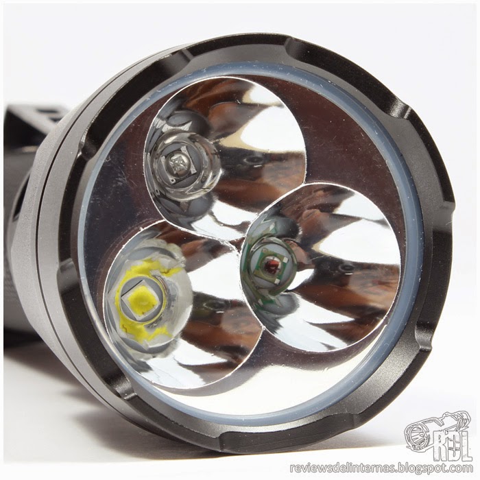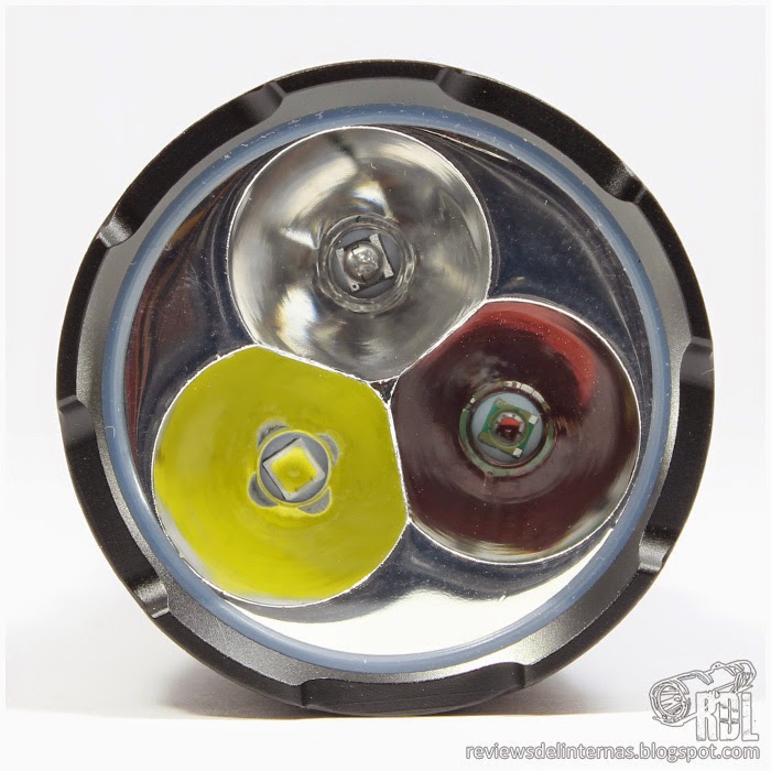 La lente de cristal protege un peculiar reflector liso, en el que tenemos tres fuentes de luz totalmente independientes. Todos los emisores se encuentran correctamente centrados.