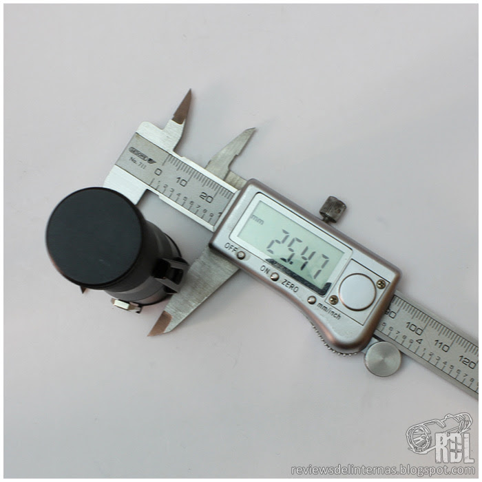 La linterna se puede desmontar en tres partes. La cabeza suelta tiene un peso considerable, lo que denota el empleo de metales de alta densidad en su construcción interna. El contacto para el polo positivo sobresale sobre el perfil, por lo que podemos utilizar sin problema alguno baterías flat-top. Las roscas tienen un corte estandar triangular, están anodizadas y llegan limpias y correctamente engrasadas.
