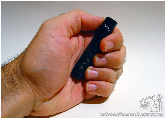 Es, de las linternas similares que he revisado, la más grande tanto en diámetro (16.2mm en su parte más gruesa) como en su largo (75.6mm). Su peso sin batería ni correa es de 21.1g.