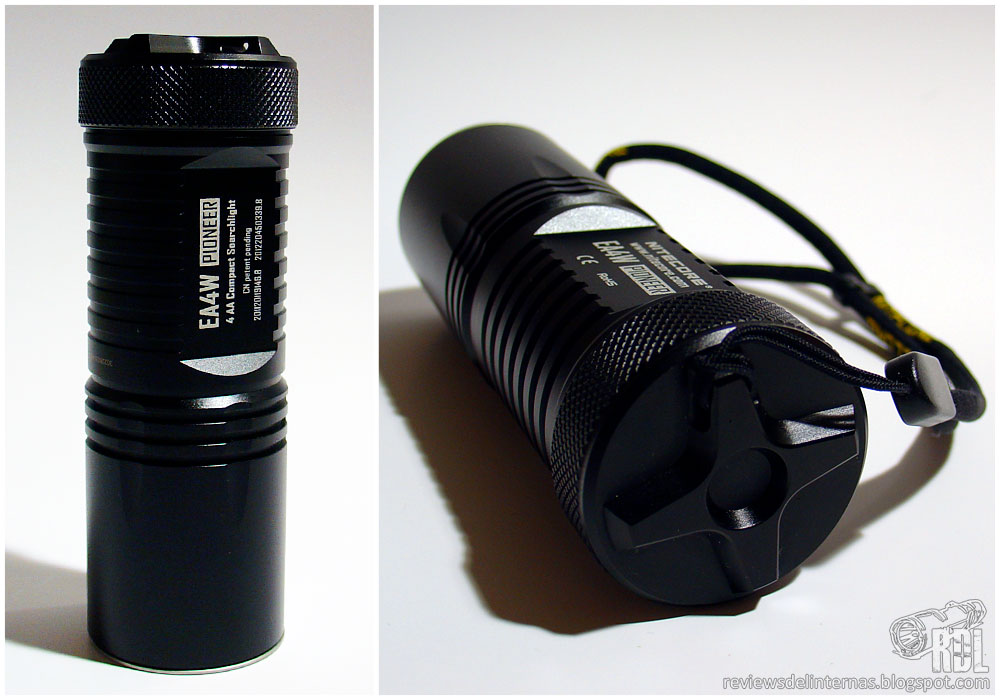 La EA4W tiene un aspecto exterior propio. Hasta la fecha, las escasas linternas de alto rendimiento que se alimentaban con múltiples baterías AA estaban segmentadas en dos familias: Las que utilizan dos baterías en serie (EA2, MT2A…) y las pocas que utilizan 4 baterías, en una configuración de 2S2P (Fenix LD41, Jetbeam PA40…).