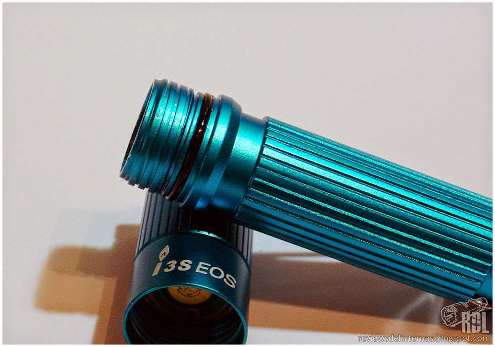 El anodizado de esta unidad tiene un tono azul turquesa muy original, completamente uniforme y sin defectos o distintos tonos apreciables. La gama se completa, además de este azul, con anodizados rojo, negro, lila y anaranjado. Cuenta con varios grabados en su cuerpo, con logotipo de la marca, modelo, LED empleado y número de serie, todos ellos bien definidos y perfectamente legibles.