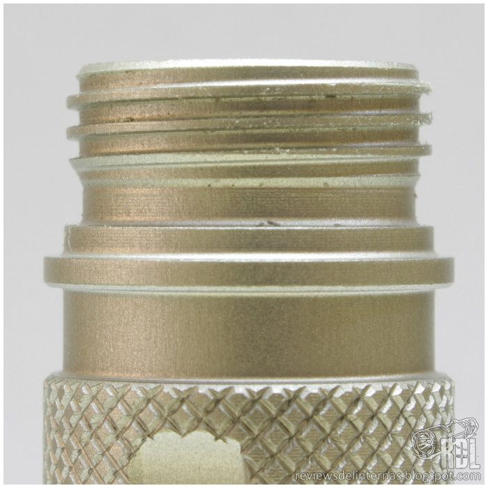 Por último, tenemos el tailcap de la linterna el cual está mecanizado con la base plana para permitir el tailstand de forma estable. Está a su vez recubierto por knurling que facilita mucho el agarre a la hora de roscar-desenroscar.